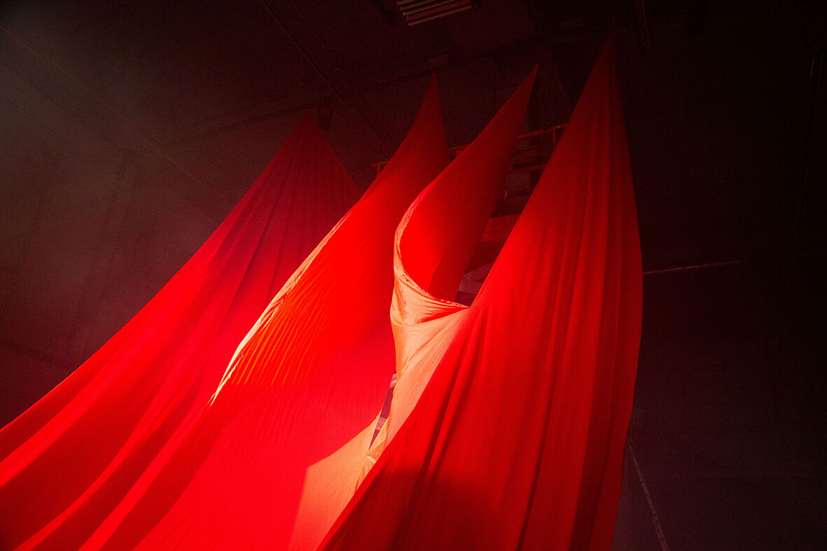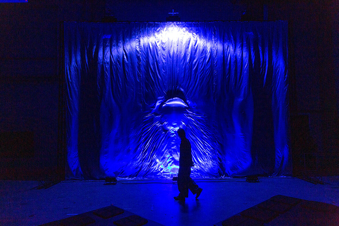 swellS is a new audiovisual collaboration between band Spill Gold (Rosa Ronsdorf and Nina de Jong) and Studio Noralie (Noortje van den Eijnde), that will premiere at Nest in Laak during this edition of AM.PM.AM. Blurring the lines between sculpture, textiles, and performance, the piece recalls the ripple effect – a metaphor for ecological entanglement and the interconnectedness of all living beings. swellS will take shape as both a 50-minute live show on Friday evening and a standalone installation that is on view only during this weekend at Nest.