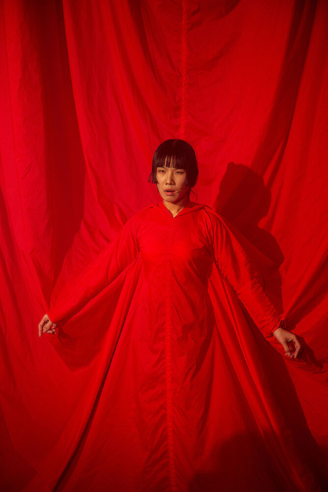The audience is invited to build, read and sing this imaginary script together: to examine how language is a performance for all of us, and how we perform through language to Make it Fit. This brand new performance performance reflects on and reframes Jiang’s earlier performances in her Make It Fit-series and her parody of authoritarian speech, allowing more of personal aspects to seep through.
